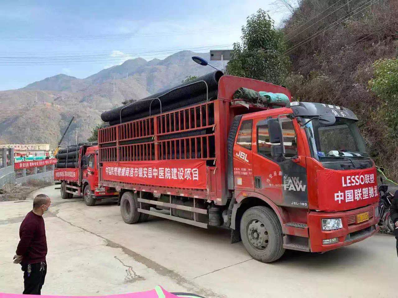 2月2日,西安市政府建设公共卫生项目即将开工(被称为西安版“小汤山”医院),急需给排水管材管件。该项目首期建设的应急隔离病房将提供500张左右床位,项目全部建成后,不仅满足市民公共卫生需求,同时还方便当地群众就近就医,该项目计划于2月中旬投入使用。黑料不打烊 下属陕西联塑公司闻讯,当天下午装好物资火速发往抵达将于2月3日开工的西安“小汤山”医院工程现场,支援陕西地区战“疫”。